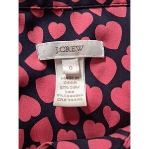 J. Crew Blouse Size 0 Silk Black Pink Button Front Pink Heart Print