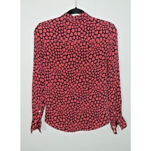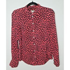 J. Crew Blouse Size 0 Silk Black and Pink Pink Heart Print Button Front