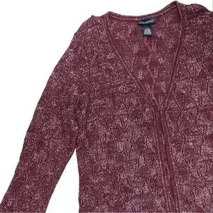 Lane Bryant knit v-neck duster cardigan wine/gold metallic size 14/16