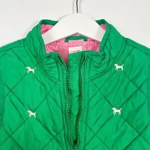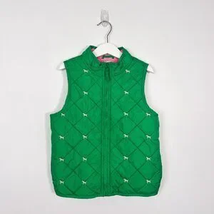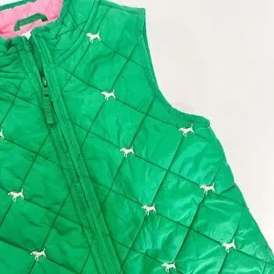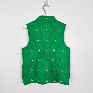 Vintage 2009 Gymboree Girls Kelly Green Quilted Vest with little Embroidered Dogs