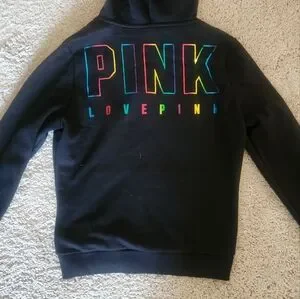 Victoria's Secret Pink Black Hoodie Jacket Size Small