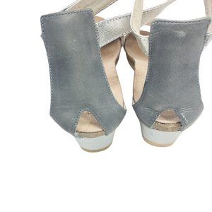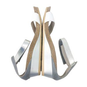 Naot Pixie Leather Wedge Ankle Strap Sandals White Silver EU 41 US 10-10.5
