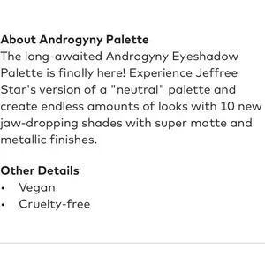 ANDROGYNY by Jeffree Star eyeshadow palette. Super pigmented. New in box.