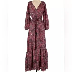 Anthropologie Boemo Long Sleeve Paisley Maxi Dress Size Medium