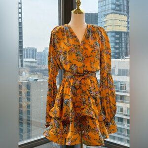 🆕 BRONX & BANCO 🧿NWOT Hanna Floral Tiered Ruffle Mini Dress, Marigold Sz M US6