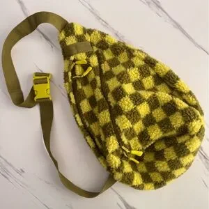 Adorable, green Sherpa checkered sling bag from No Boundaries. Two zipper compartments, very roomy