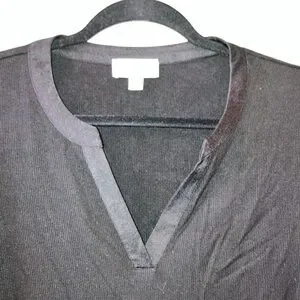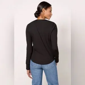 A split neckline with satin trim elevates the versatile Beau tee by EVEREVE, featuring a long sleeve silhouette, curved hem, and soft rib knit fabric. Layer with a shacket and jeans, or wear tucked into cargo pants.