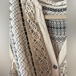 Anthropology floreat dress size 6 beautiful detailing on neck line, tassel belt, pockets, button sleeves great festival dress boho vibes