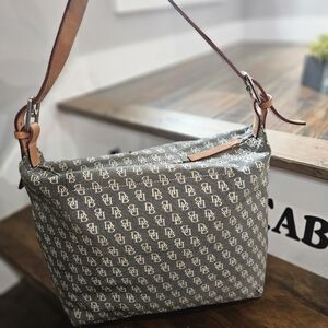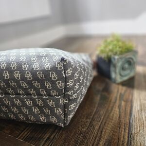 Dooney & Bourke Gray and Cream Signature Print Canvas Purse.