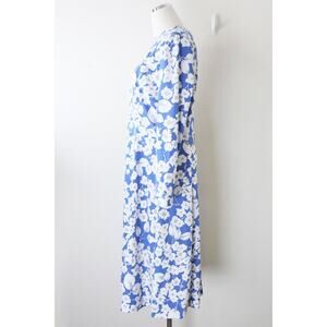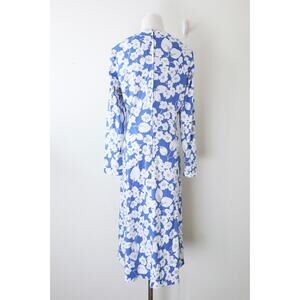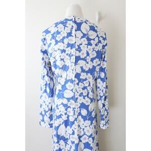 Vintage 1970s Marek New York Midi Dress Blue Floral Print Long Sleeve