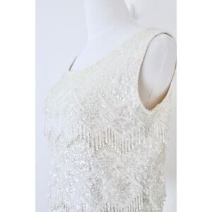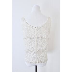 Vintage 1960s Mai Ling Beaded Shell Top Made In Hong Kong Sleeveless Cream