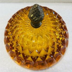 Vintage Indiana Glass Acorn candy dish in diamond point pattern. Color is clear & vibrant, NO cracks, chips or stains. Excellent condition. Measures approximately 5” wide by 5.75” tall. Acorn handle is brass.