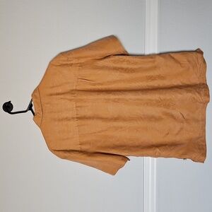 Color: Orange Sherbert-ish. The shirt is slightly lighter than how it shows in the pictures, it's like a lighter orange but not too light.