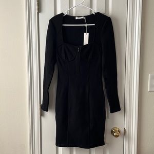 Jonathan Simkhai Standard Pia Bustier Ribbed Long Sleeve Mini Dress in Black Size M