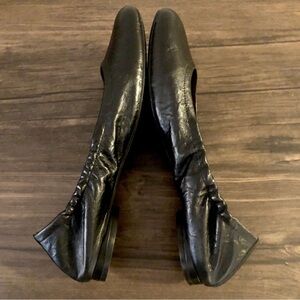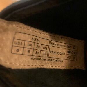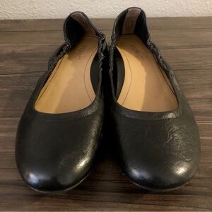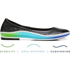 Excellent Condition- Vionic Size 8 Alexa Black Leather Slip On Elastic Topline Ballet Flats. Features: soft black Lizard embossed leather upper and rubber outsole, elastic back topline for additional comfort & Alexa Flats Vio-Motion Technology is designed to hug your arches and support your feet in comfort. Vionic flats built-in orthotic is shown to be effective in helping to treat heel pain (plantar fasciitis). Round toe and flat slip on style. No signs of wear to upper and very clean inside and out. Bundle with other items in my closet for the best deal!