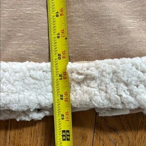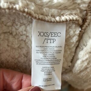 Stylish CAbi jacket with cozy sherpa lining. Features a tan exterior and cream accents. Perfect for warmth and style. Like new condition