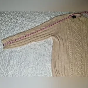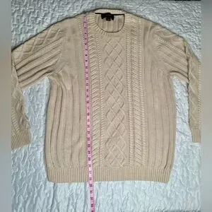 Tasso Elba Men’s Beige Cable Knit Sweater Size L | 100% Cotton | Preppy Vintage-Inspired Pullover Style #8046