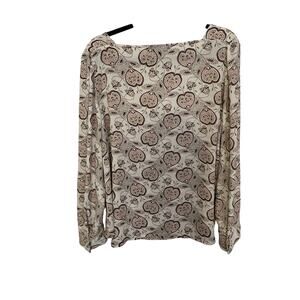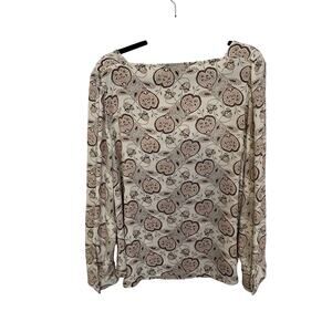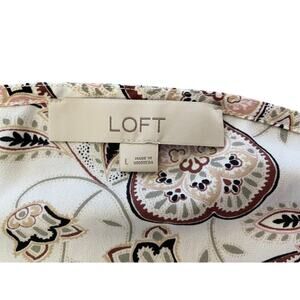 Loft Long Sleeve Blouse Womens Size Large Cream Green Floral Paisley Small Pull