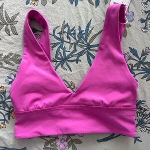 Super cute, buttery soft V-neck sports bra! Never worn and still with tags. The color looks just how it does in the photos!! Let me know if more photos are needed!!