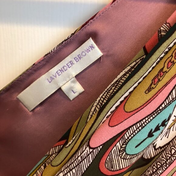 Deep V front and back style. The top crosses over both front and back at the waistline. This style is a mini and twirls almost full width. Sleeveless flared mini dress with gathered elastic waistline. Lined in rose pink satin. Multi-color chic boutique design.