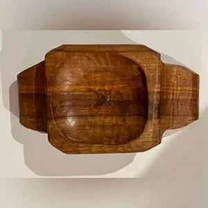 This handcrafted 2 Way Hand Hewn Wood Candleholder is designed for all occasions with its warm brown color and versatile use. Made in the United States, it features copper inserts for tapers and a peg for 2-inch or less diameter candles. The medium-sized candle holder is 6.25 inches long, 2.25 inches high, and 3.5 inches wide, showcasing a unique blend of wood and copper materials with a varnished finish. Perfect for adding a touch of rustic charm to any decor setting.