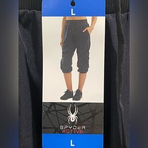 SPYDER WOMEN’s Active Capri Lightweight Pants Drawstring Pockets Size L Black