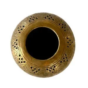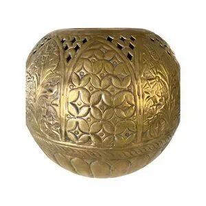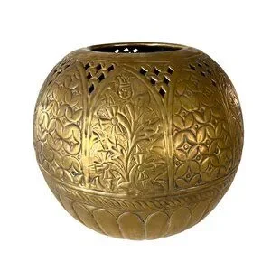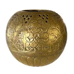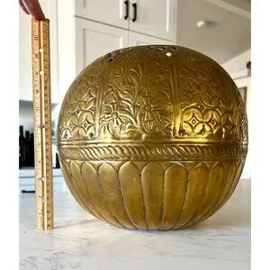 Vintage Large Brass Round Sphere Planter Floral Thistle Geometric Designs 11"