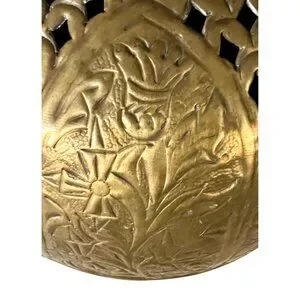 This gorgeous vintage brass planter features intricate floral, Scottish thistle and geometric engravings, offering a timeless addition to any sophisticated interior decor. Suitable for displaying plants or as a standalone decorative piece, it combines artistry with functionality. Its metallic sheen and craftsmanship reflect a traditional yet elegant aesthetic. In good vintage condition. Has patina and wear appropriate for age, which just adds to the piece's charm.