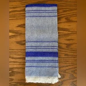Beautiful woven hand towel / tea towel made by artisans in southern Mexico. Gorgeous dark blue and white serape pattern with fringe.