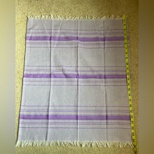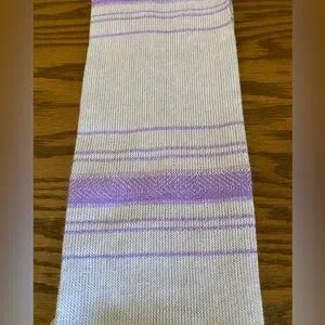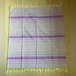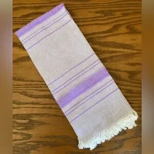 Beautiful woven hand towel / tea towel made by artisans in southern Mexico. Gorgeous light purple / lavender and white serape pattern with fringe.