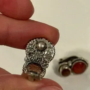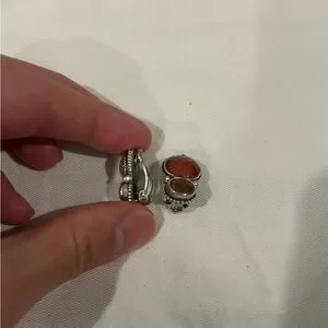 100% authentic and in like new condition! Gorgeous piece from Stephen Dweck set in 925 Sterling Silver with a gorgeous pair of red faceted gemstones.