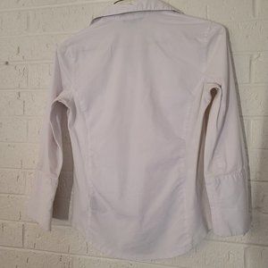 picturing stretch white office button up cuff sleeve blouse by zac & rachel