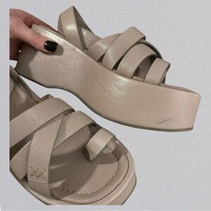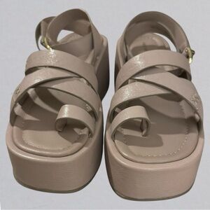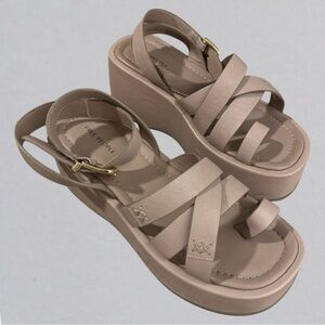 Designed in a captivating Ember hue. These leather sandals feature a trendy criss-cross upper and toe loop, coupled with a buckle ankle strap for a secure fit. They're versatile enough to complement any outfit, Worn once. SO beautiful on.