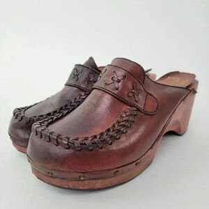 Vintage 70s Wooden Platform Clog Sandals - 6