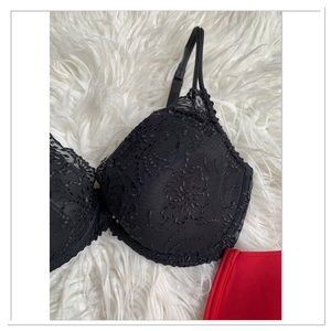 Red Heart Shape Cup With Circle Dot Strap Details Lightly Padded And Black Jane Push Up Bra With Lace Detail Both Underwire Cup By Marie Jo Size US 34DDD