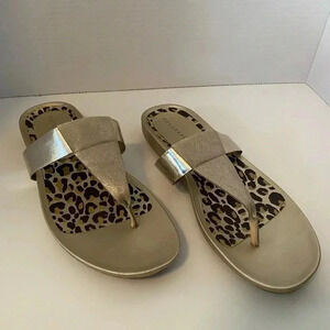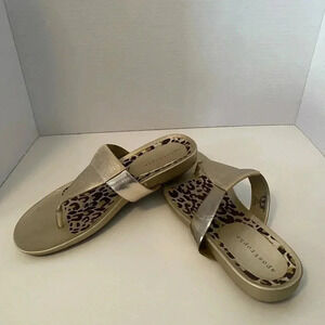 Apostrophe gold, animal print, with glitter sandals. Size 10