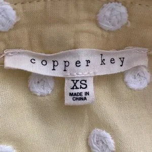 Copper Key Embroidered Dot Yellow Button Down Top Size XS