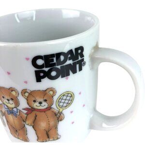 Cedar Point White Ceramic Coffee Mug Cup Teddy Bears & Tennis Rackets 11 oz