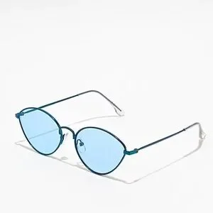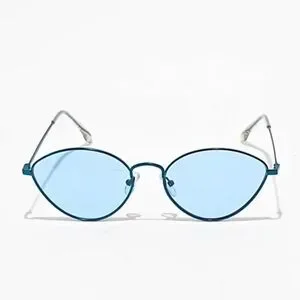 Designed with UV400 protection, the Cat Eye sunglasses arrive with a light blue tinted lens on a thin blue metallic frame. With translucent rubber temple tips for comfort, the Cat Eye-shaped sunglasses are perfect for a stylish day in the sunshine. New