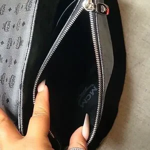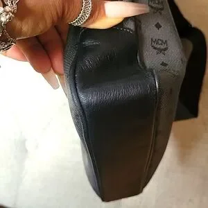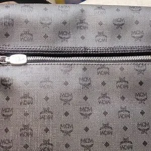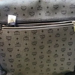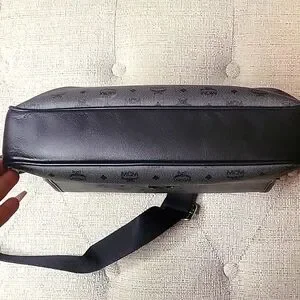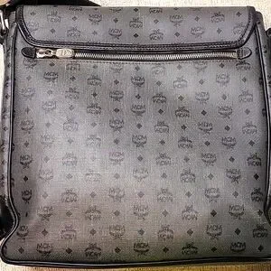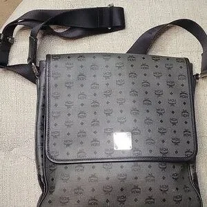 Large Mcm Messenger Bag. Black and great. Great unisex piece. It has a back zipper pocket, and 2 large pockets in the inside 1 has a zipper. large enough for a medium-sized laptop. Scratches on Mcm plate only. Absolutely no wear on the strap or corners. No stains that are visible.