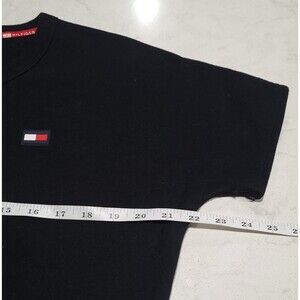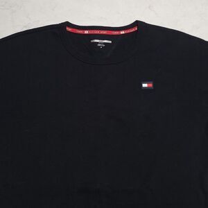 Elevate your casual look with this classic Tommy Hilfiger Sport sweatshirt, featuring the iconic flag logo. This pullover has short sleeves, a crew neckline, and is made of heavyweight polyester material. The black color and solid pattern make it versatile and perfect for any season, whether you're riding or playing rugby.