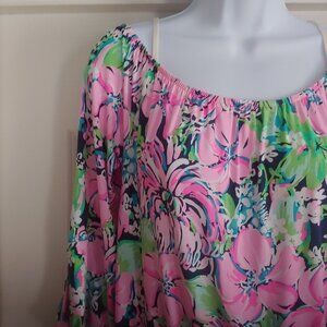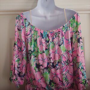 Lily Pulitzer Off Shoulder Lana Romper with Shorts Pink Blossom 3/4 Sleeve S