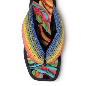 NEW Farm Rio Black Banana puffy Fluffy crochet flip flop sandals size 8
