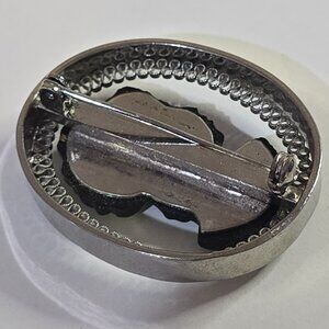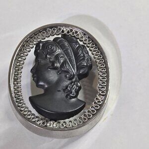 Vintage Suspended Black Glass Cameo Oval Silver Tone Brooch