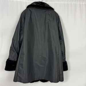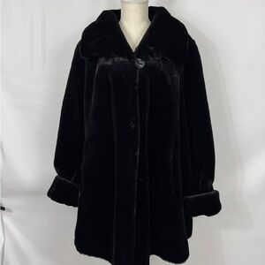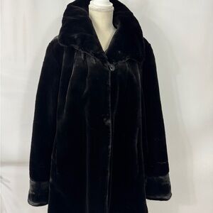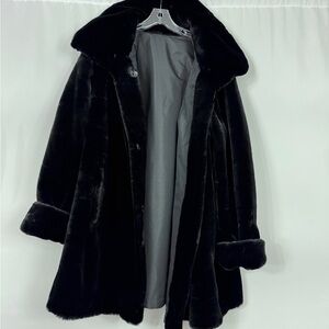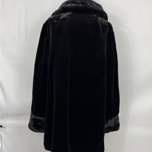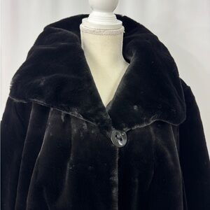 Elegant faux fur coat by Marvin Richards. No tag as it is reversible to a rain coat. Fits 12-16 see measurements. Soft and plush fur. This coat will not dissapoint. Perfect for winter. Thick plush fur, excellent condition. No flaws