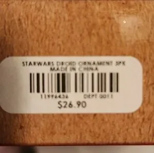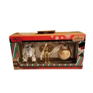Set of three StarWars droid ornaments. Includes R2-D2, C-3PO, and BB-8. Perfect for holiday decor.