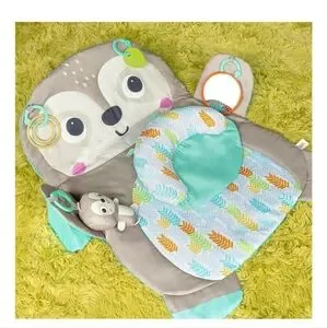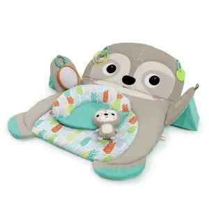Sloth Tummy Time Mat Props Up: Made to make tummy time easier for babies and parents! The cheerful sloth character props up to bring toys within reach and cheer baby on while on their tummy. Includes prop pillow for extra support