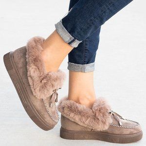New Taupe Furry Moccasin Slip on Slipper Loafers