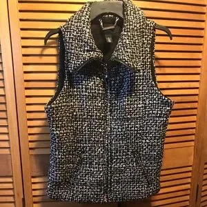 White House Black Market Black & White Boucle Vest