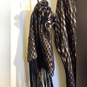 Frederick's of Hollywood Black Crochet stretchy Dress XL with drawstring purse